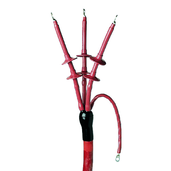 Описание конструкции: Мастика для снижения напряженности электрического поля накладывается вокруг места среза экрана кабеля. На все жилы устанавливаются изоляционные трекингостойкие термоусаживаемые трубки. Корешок разделки защищает 4-х палая перчатка с клеем. Жилы остаются эластичными и могут изгибаться так же, как и кабель. На концевые муфты наружной установки устанавливаются по 2 изоляционные юбки на жилу.
